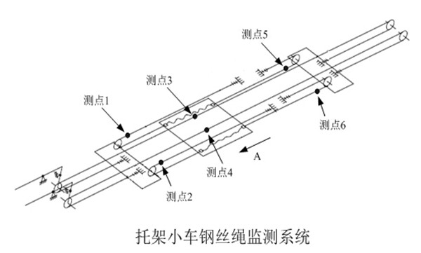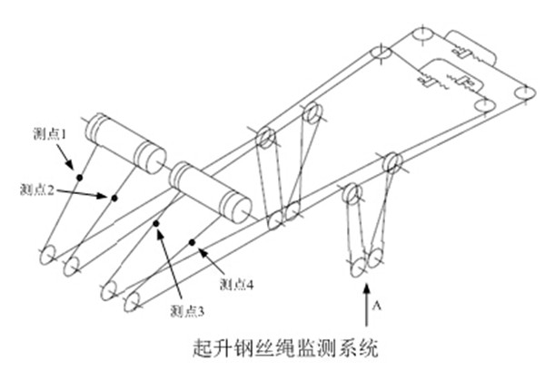 在正常吊裝過程中,起升老司机黄色激情视频載荷(包括自重載荷和起升載荷等)、運行速度快的部位在卷揚機出繩口附近,經常在此位置往複運動的老司机黄色激情视频也是整根老司机黄色激情视频損傷嚴重的部位,所以在此位置布置測點,能夠探測出老司机黄色激情视频需要關注的部分,從而使操作人員能夠實時掌控老司机黄色激情视频的運行狀態,為安生產提供有力的保障。