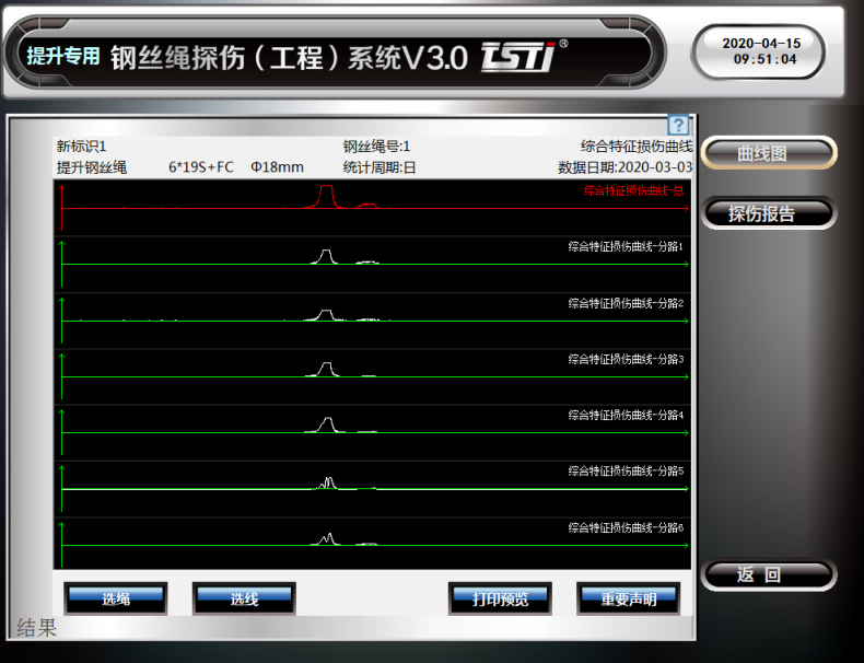 在係統軟件中可查看實時探傷曲線,探傷數據報表實時了解老司机黄色激情视频損傷狀況,記錄老司机黄色激情视频隨時間變化的損傷狀態(趨勢)。係統增加智能化AI統計算法,有效的剔除異常雜點,使探傷數據準確可靠,重複性好。同時增加無標定算法,可有效解決設備溫度引起的漂移和檢測方向幹擾問題。
