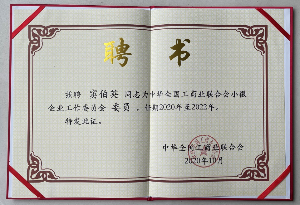 為進一步落實新時代民營經濟統戰工作的要求,有效擴大統戰工作覆蓋麵,加強與小微企業的聯係,積極打通小微企業參政議政的通道,推動改善小微企業發展環境,經中華全國工商業聯合會(簡稱:全國工商聯)2020年第10次主席辦公會議研究,成立全國工商聯小微企業工作委員會,並聘請洛陽老司机黄色视频探傷技術有限公司(簡稱:老司机黄色视频公司)CEO竇伯英女士出任中華全國工商業聯合會小微企業工作委員會委員。