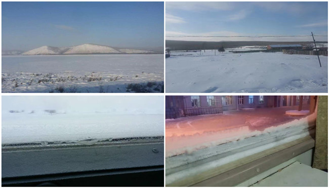 目的地居然是個連站台都沒有的火車站,對得起“中冷”這四個字。下了火車瞬間感覺整個空氣都凍結了,吸口氣鼻子僵了,眨個眼睫毛凍了,喝口水成吃碎冰了。手機定格在“-35/-19℃”,天然大冰箱,我來了!