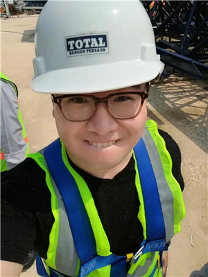 看到那100多米高的吊裝設備了嗎?我是個登頂的人哦!