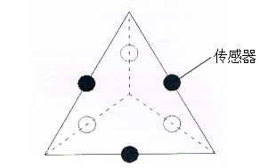 將6個柱狀線繞式電感傳感器,按正三棱錐三維空間形體配置,如圖1所示。每個傳感器作為正三棱錐的個棱邊,各三角形平麵由3個傳感器尾相隨順序連成,利用正三棱錐體空間對稱的幾何點,形成各傳感器之間既相互立又相互共用的相關關係。磁場信息屬種空間物理場,能量集中表現於發生源(磁)附近空間,現行的感應線圈(環狀)傳感器和霍爾應(片狀)傳感器,隻限於軸向(維)或麵向(二維)采集,柱狀線繞式電感傳感器有明顯的取向接收性,三維磁信息感應橋裝置獲得了空間多取向采集模式,如圖2所示,可有完成對磁場信息的完整采集。