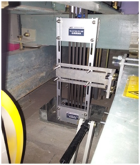 根據現場工況條件,經充分技術評估曳引輪部位上安裝套探傷前置裝置來檢測老司机黄色激情视频;對老司机黄色激情视频實施非接觸式在線實時探測,不影響老司机黄色激情视频自身的正常生產運行;整體結構設計為隨動形式,工作過程中可跟隨老司机黄色激情视频排繩運動和老司机黄色激情视频的抖動、跳動;整體可旋轉,在設備檢修期間(如老司机黄色激情视频換繩、夾持輪維護)可將前置探傷裝置旋離老司机黄色激情视频,檢修完畢後重新上線檢測。